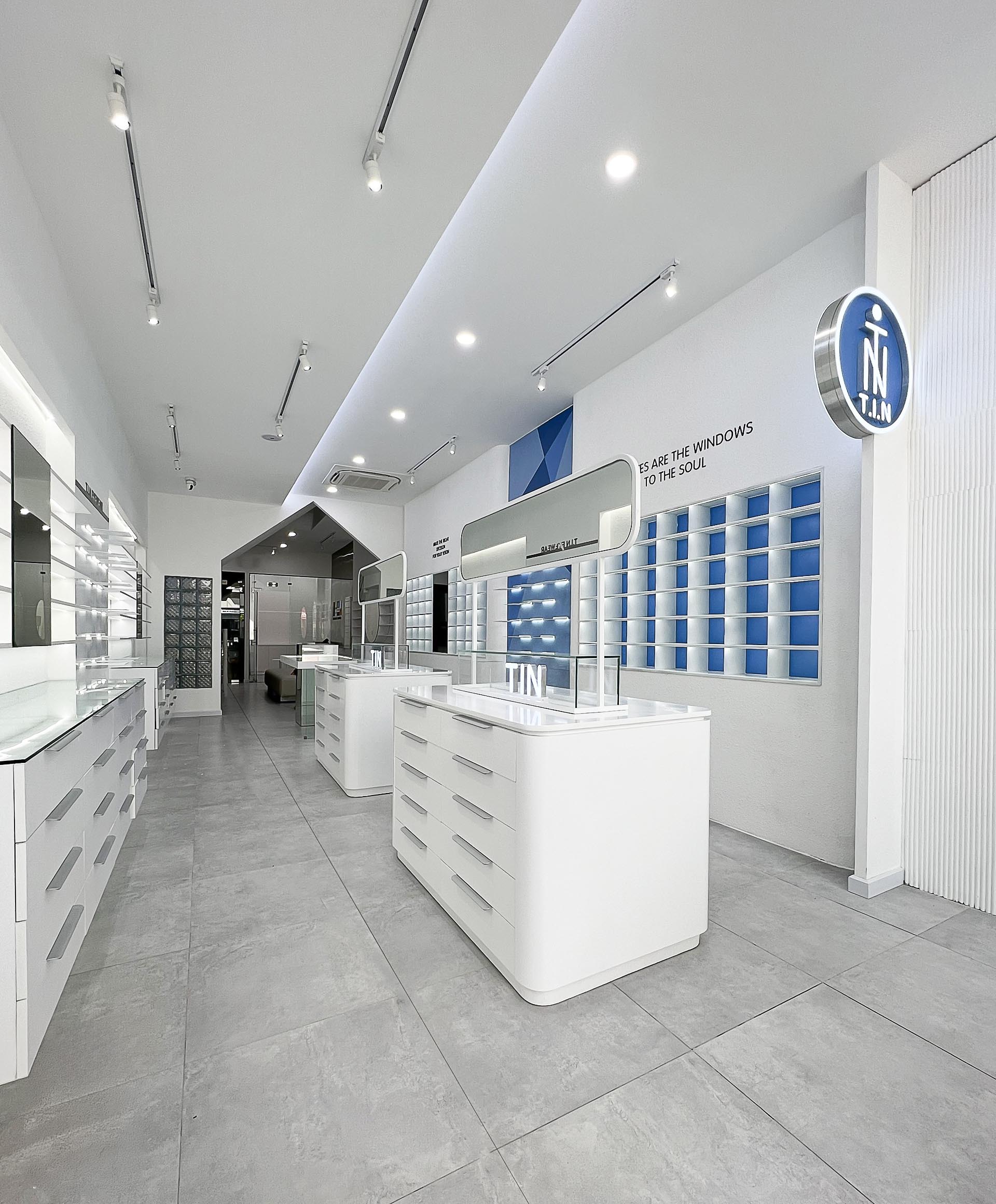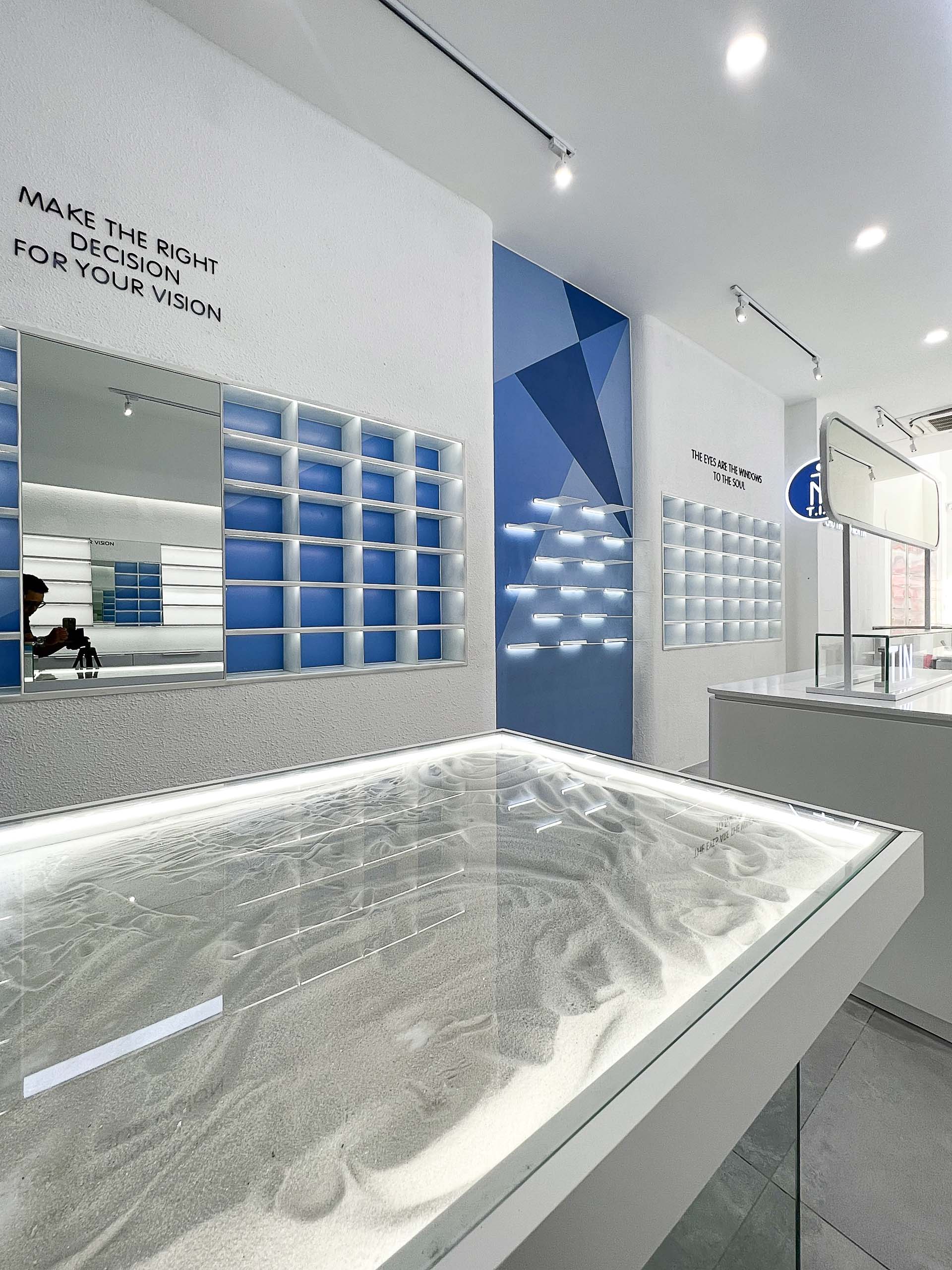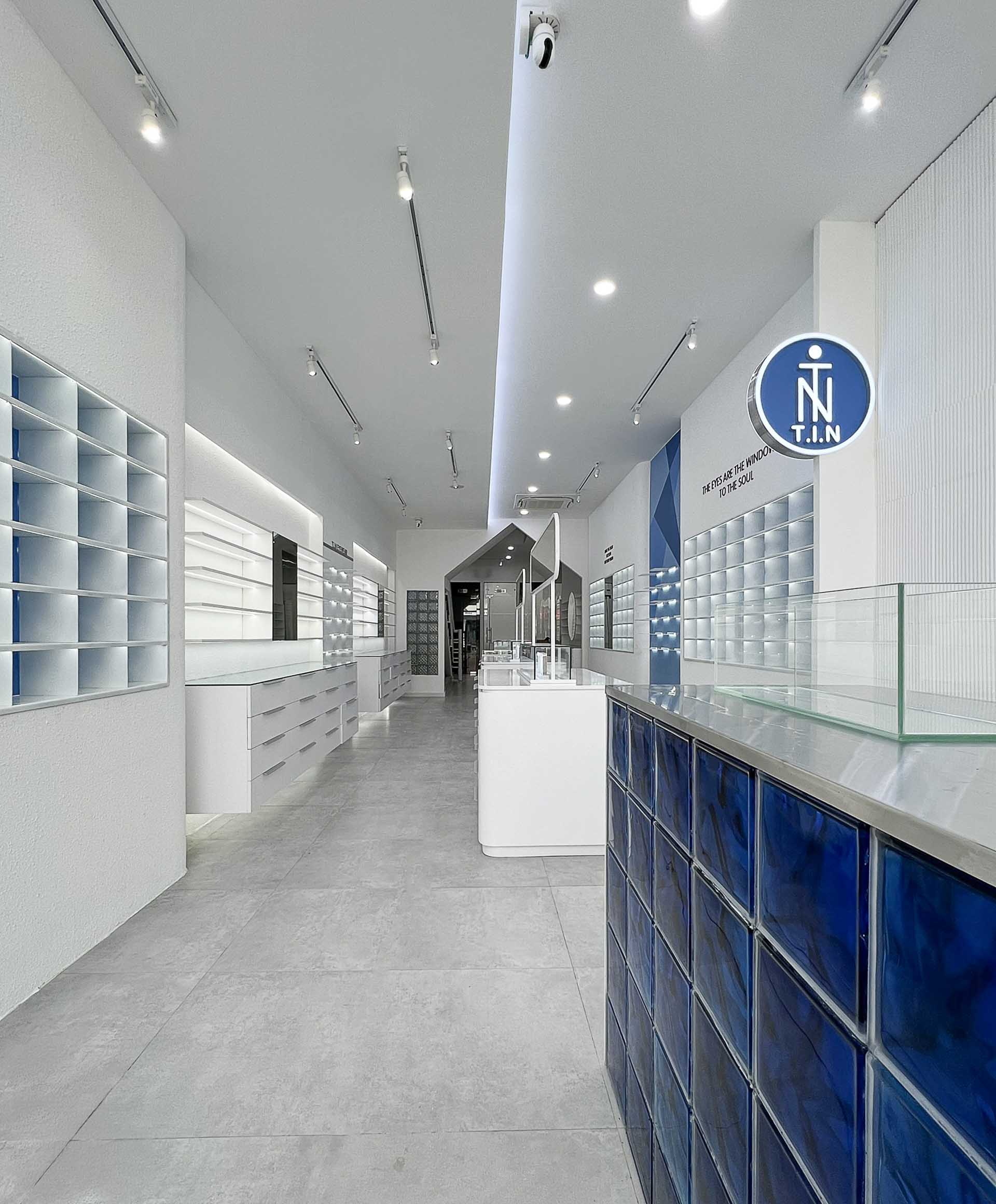 Ý tưởng : NÉT CONCEPT thiết kế thi công nội thất shop Mắt kính T.I.N với phong cách shophouse hiện đại thanh lịch mang tông màu xanh tạo cảm giác không gian thoáng đãng và tràn đầy năng lượng từ biển, càng đẩy mạnh nổi bật lên các mẫu Mắt kính của T.I.N .