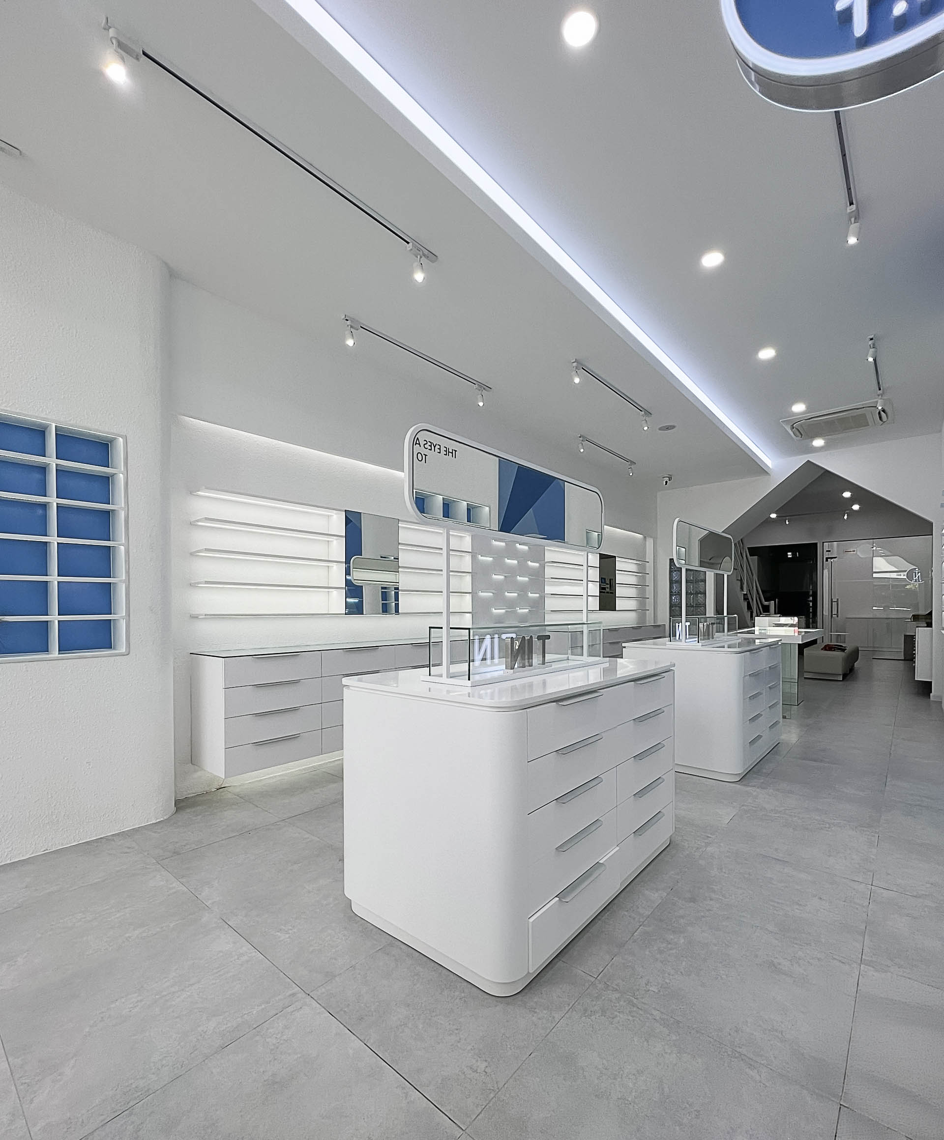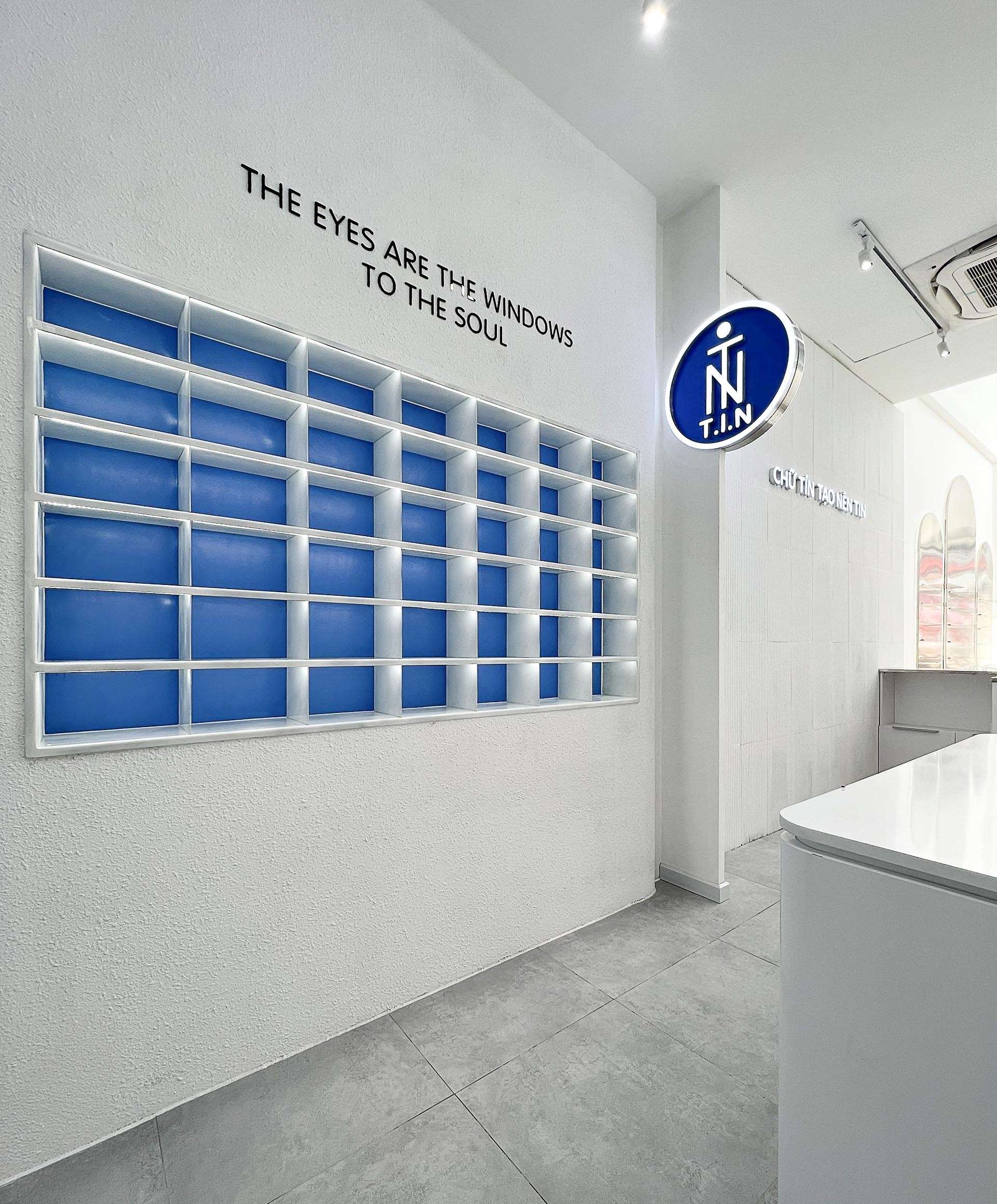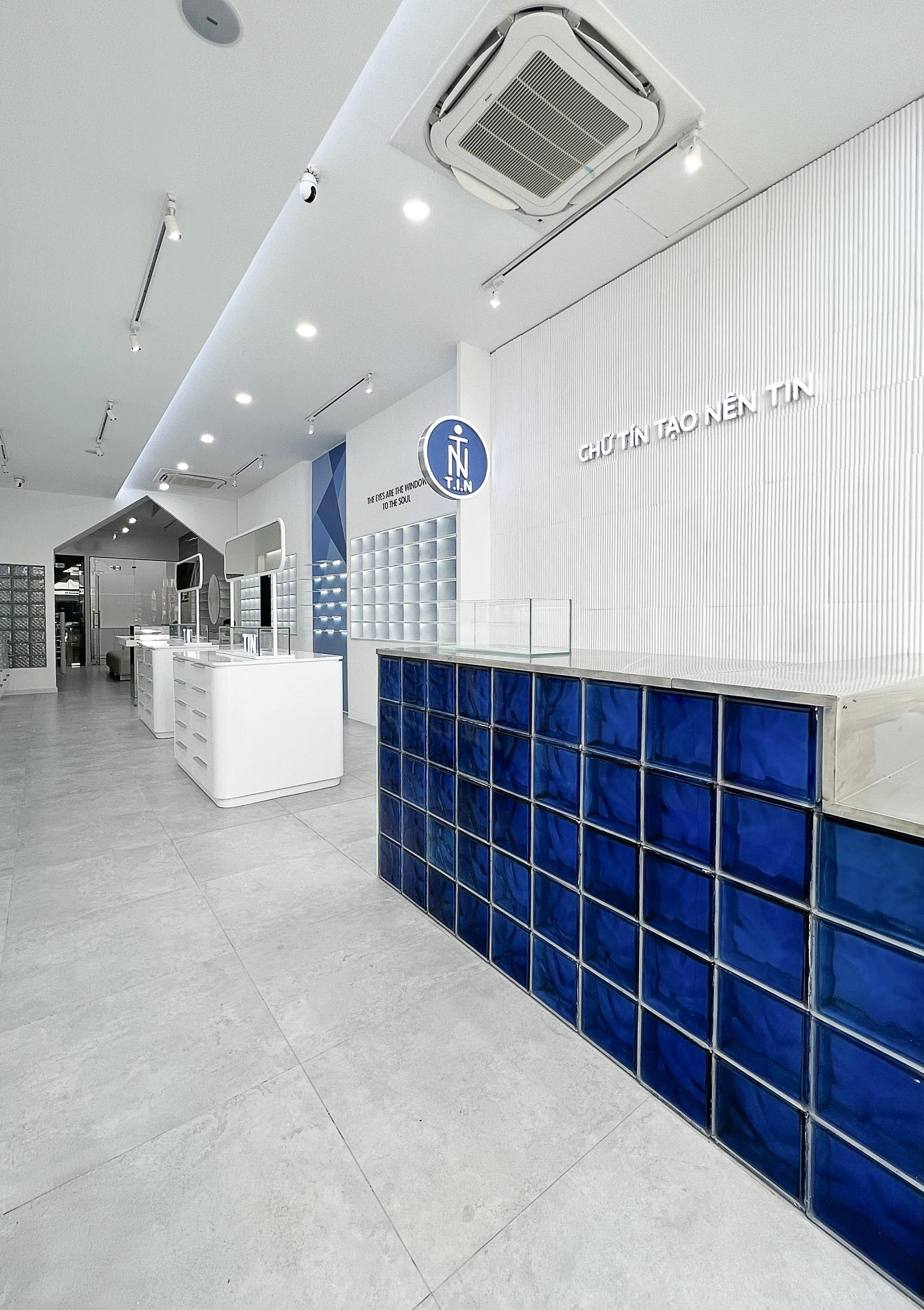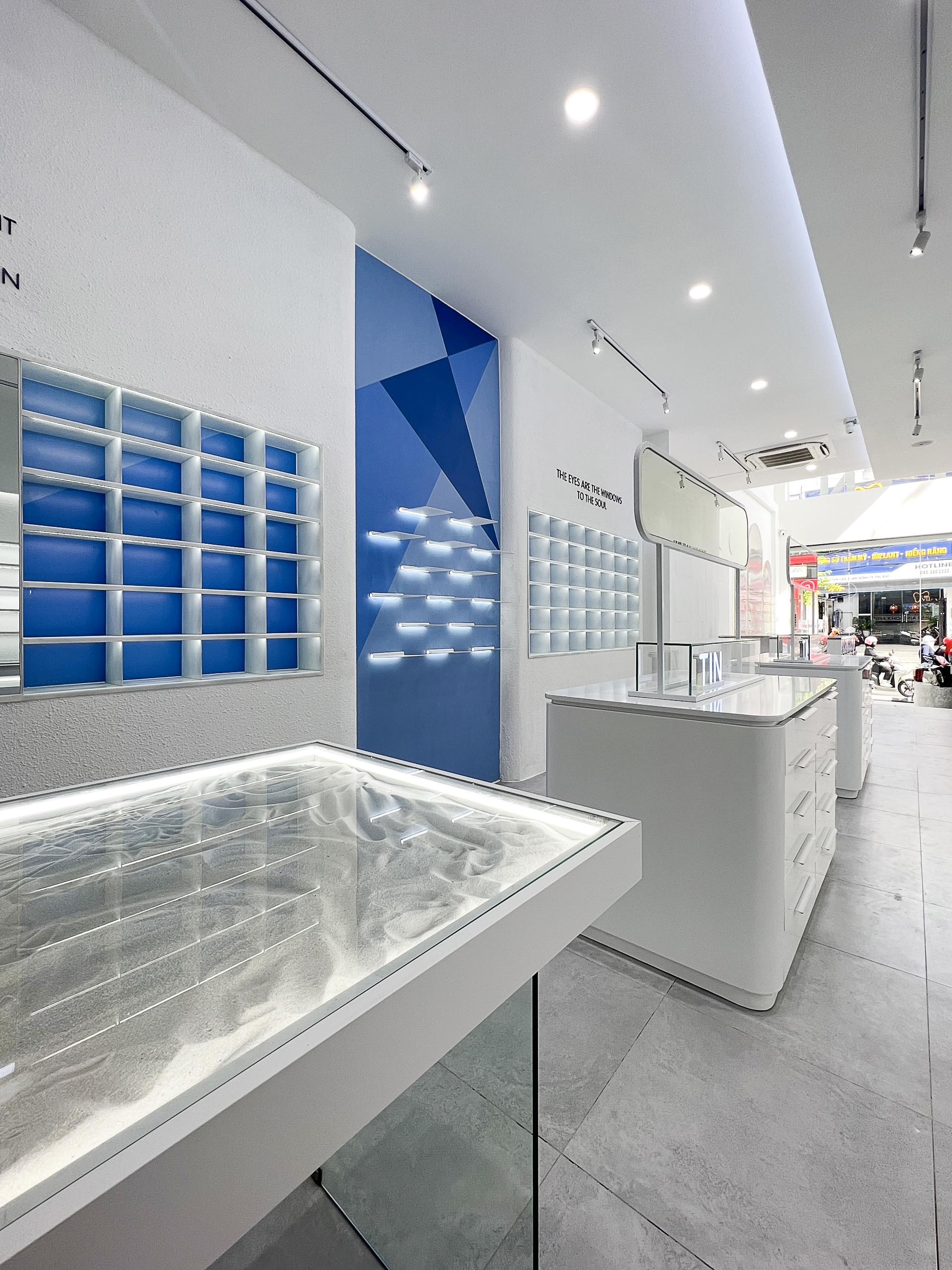 Ý tưởng : NÉT CONCEPT thiết kế thi công nội thất shop Mắt kính T.I.N với phong cách shophouse hiện đại thanh lịch mang tông màu xanh tạo cảm giác không gian thoáng đãng và tràn đầy năng lượng từ biển, càng đẩy mạnh nổi bật lên các mẫu Mắt kính của T.I.N .