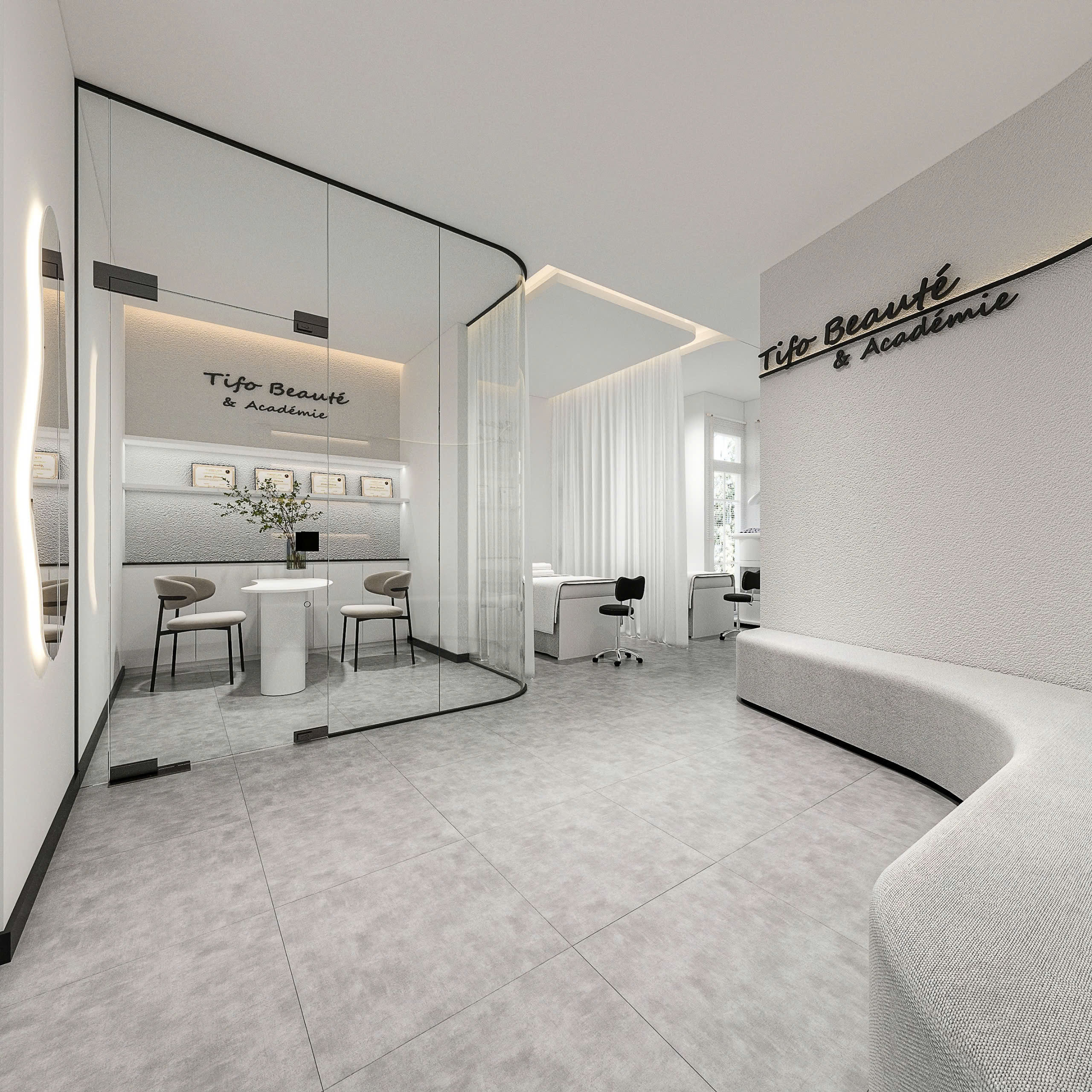 Ý tưởng : NÉT CONCEPT thiết kế thi công nội thất SPA TIFO BEAUFE' & ACADEMY với phong cách shophouse hiện đại thanh lịch tạo cảm giác không gian thoáng đãng và tràn đầy năng lượng cho khách hàng nghỉ ngơi và chăm sóc sắc đẹp